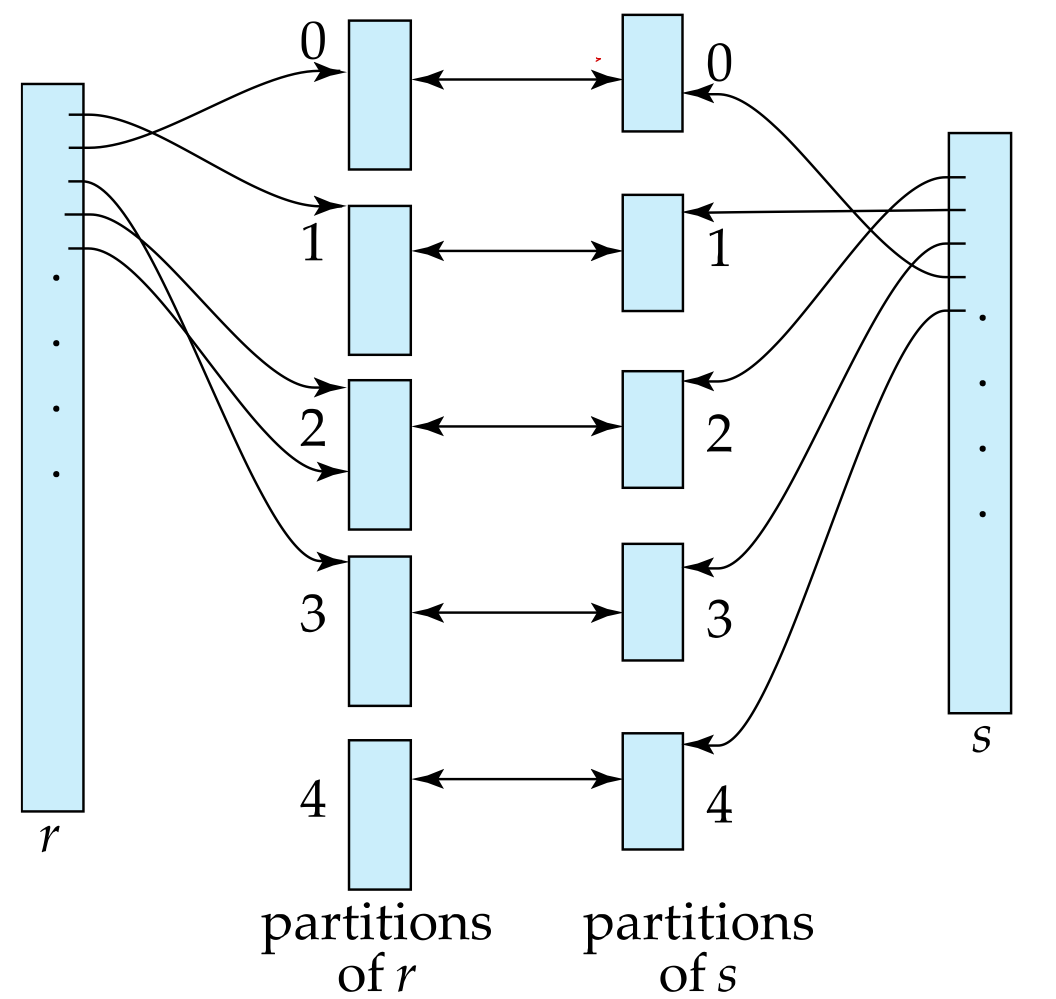 해시 함수를 이용한 join 방법입니다. 이 방법 또한 Equi-join과 natural join 에 사용 가능합니다.