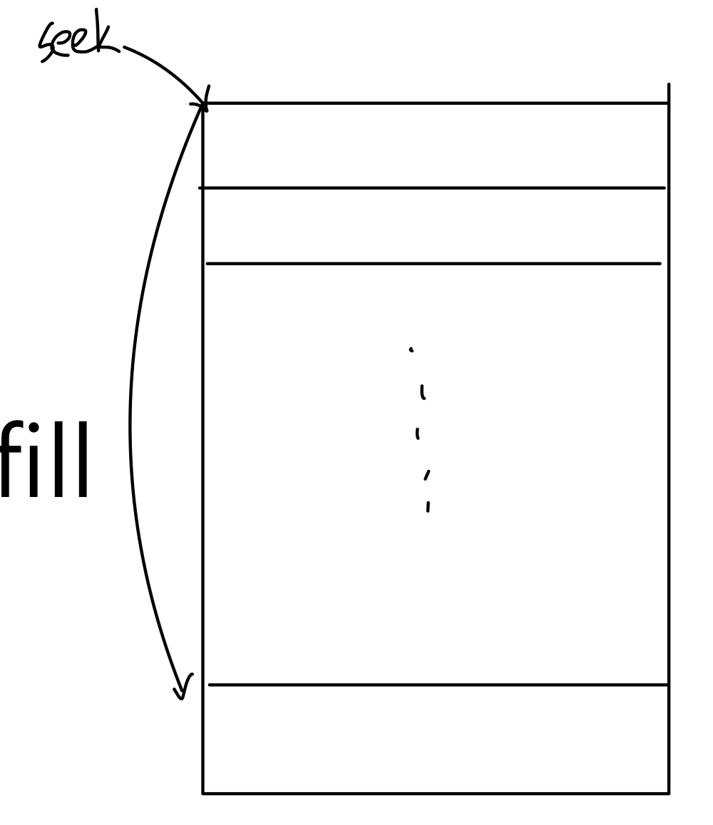 랜덤 액세스를 하는 꼴이 됩니다. 하지만 위에서 보았듯, seek time 은 transfer time 보다 절대적으로 느리기 때문에 효율적인 작업이 아닙니다.