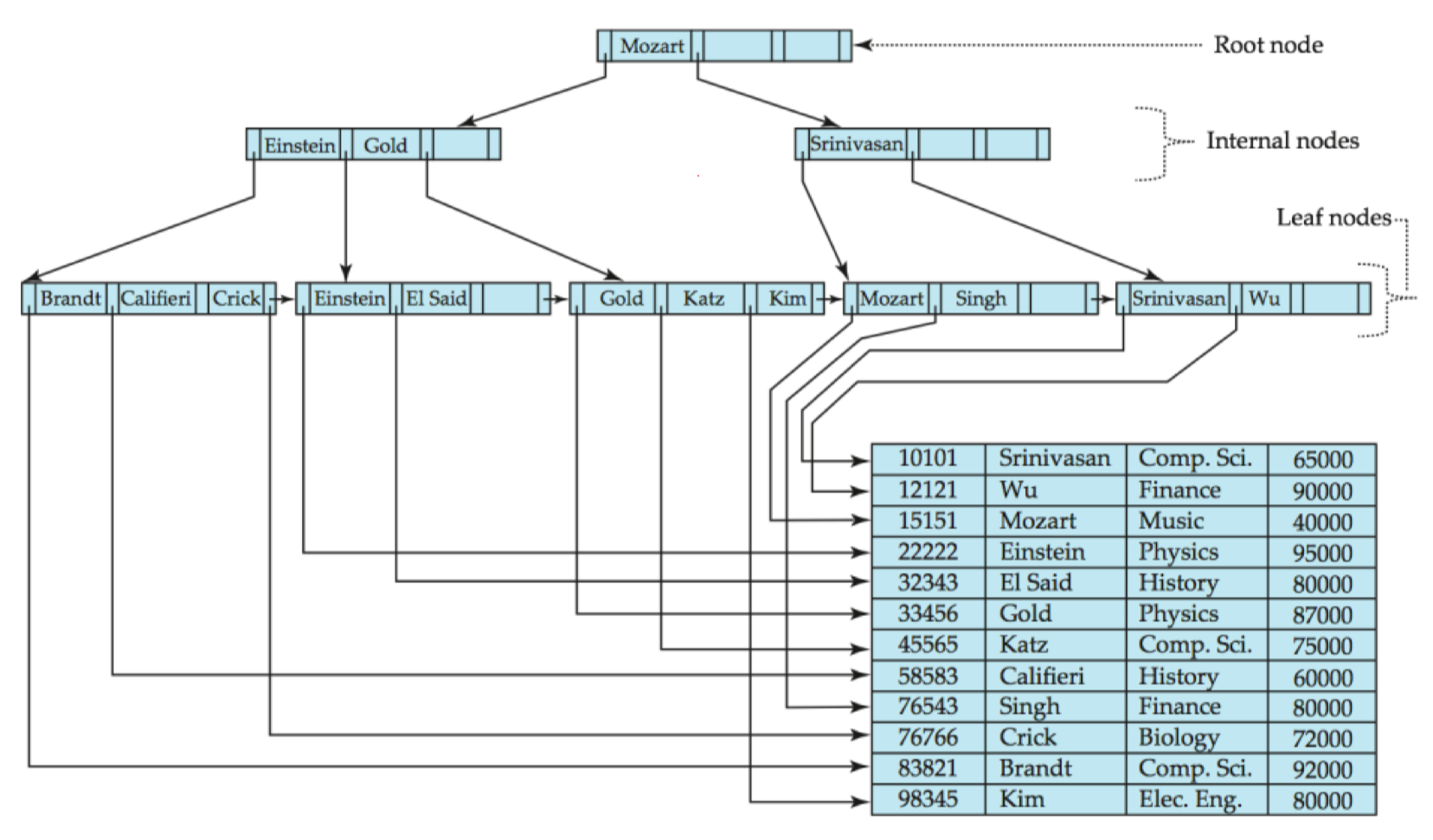 또한, leaf node는 테이블을 가리키는 포인터를 가지고 있을 뿐입니다. 따라서 테이블에 직접 접근하기 위해서는 추가적인
