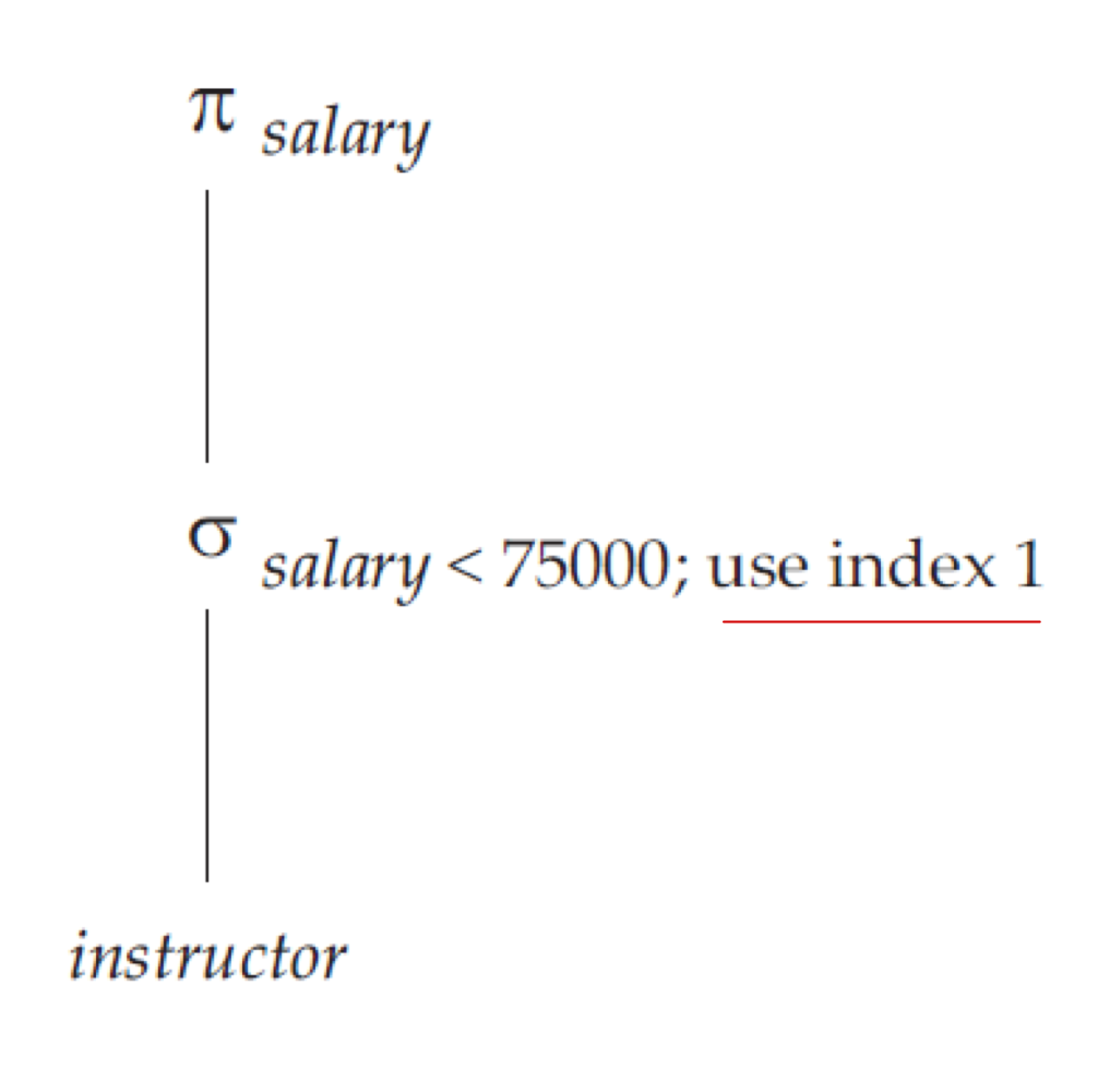 75000보다 작은 튜플들을 찾고, salary 만 Projection 하는 방식으로 진행됩니다.